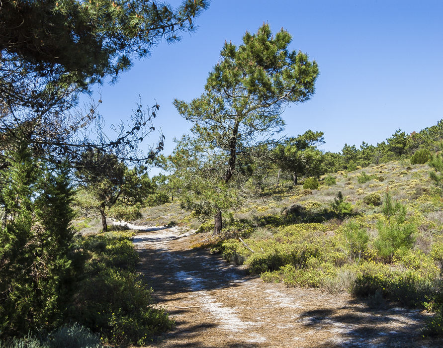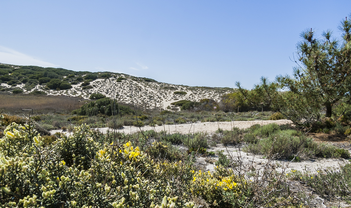 Von Gestrüpp überwuchertes Ödland auf verfestigten Dünen in Küstennähe; in 0-300 m Höhe